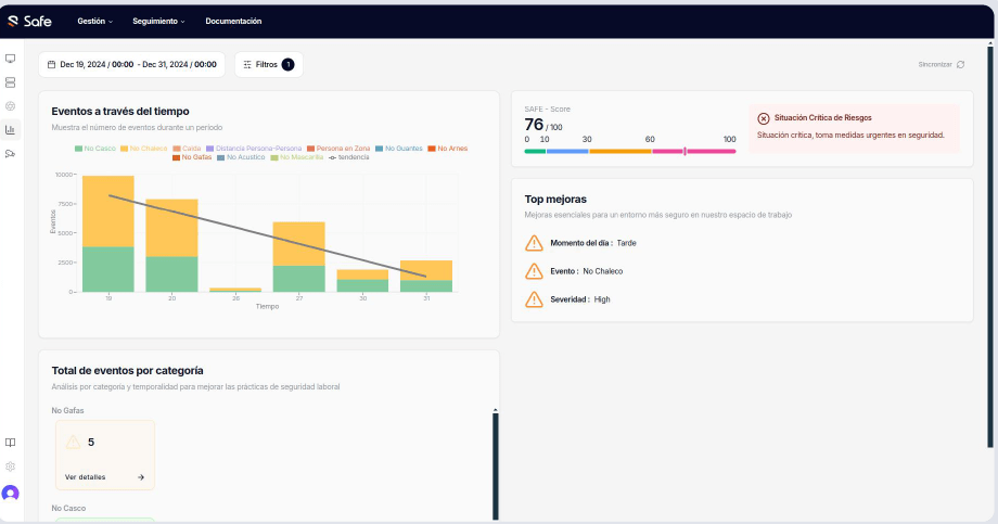 - Detection of more than 25 risk situations in real time