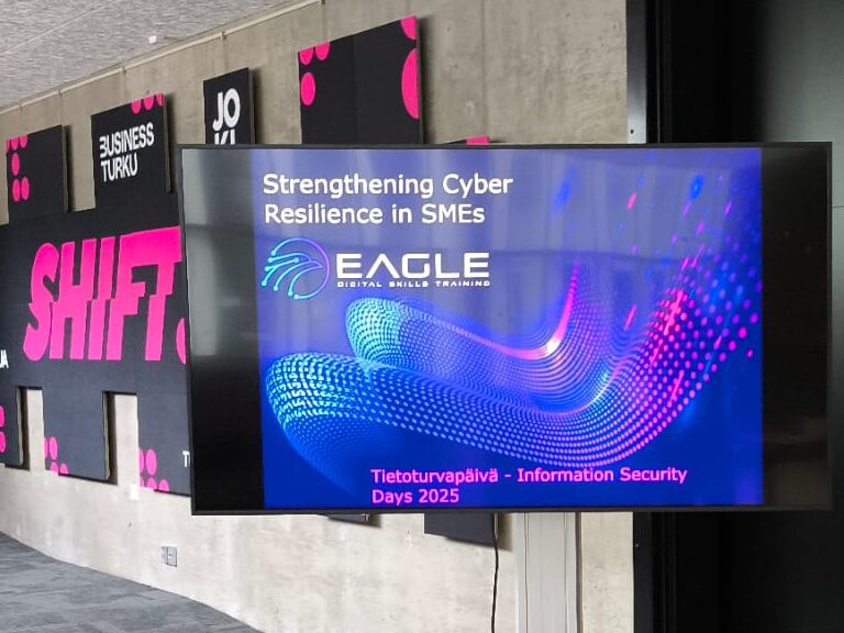 El 28 de mayo de 2025, el proyecto europeo EAGLE celebró con éxito la conferencia internacional Strengthening Cyber Resilience in SMEs en Turku, Finlandia. Este evento reunió a expertos, responsables políticos y representantes de pymes para abordar los desafíos y oportunidades en ciberseguridad. DIHBU participó en la conferencia, desplazando a su técnico de proyectos Laura Guimaraes a Turku.