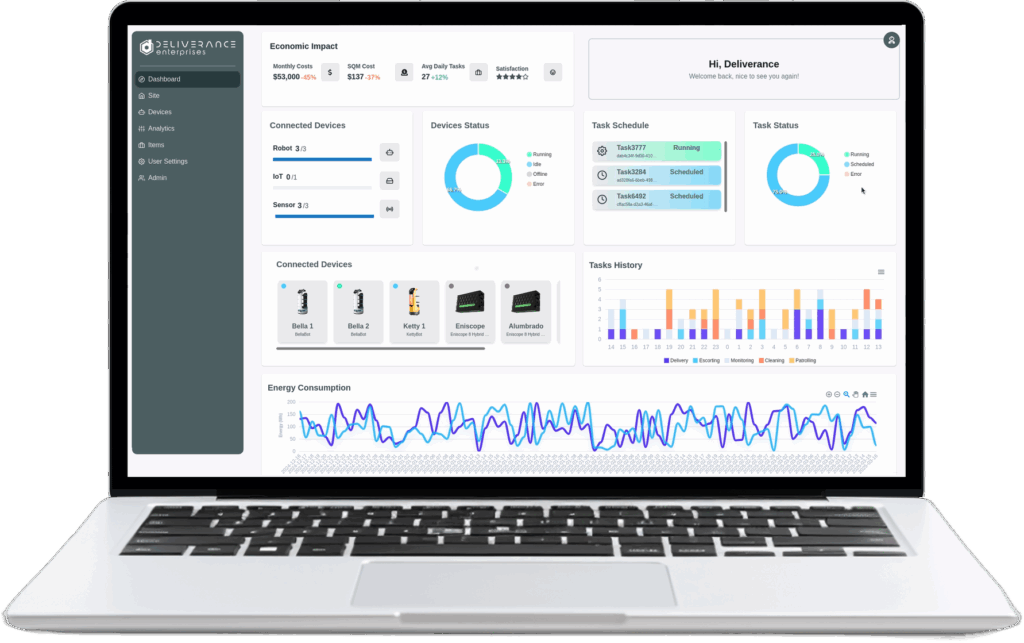 Deliverance Enterprises S.L. is a technology startup dedicated to the development of advanced solutions in automation, artificial intelligence (AI) and Internet of Things (IoT), aimed at improving operational efficiency and sustainability. Participates in the POLEA Lab project providing technical collaboration for adaptation of robotics services and connectivity/intelligence in robotic elements.