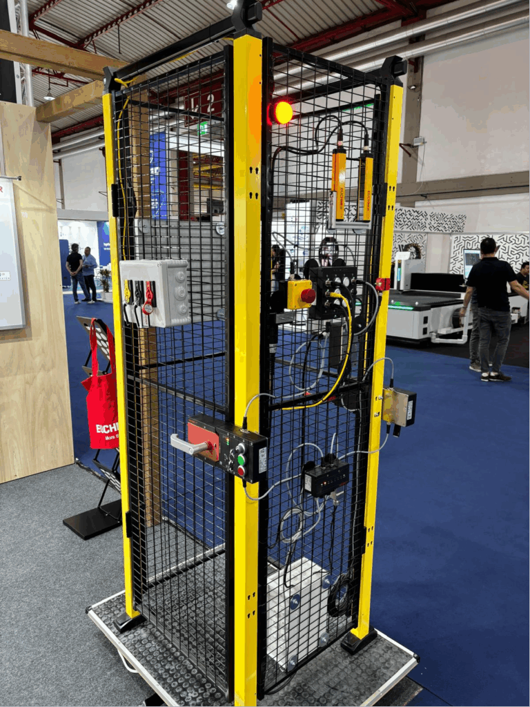 The installation allows real-time demonstration of how different safety technologies applied to Industry 4.0 environments work, ensuring controlled access and operator protection in industrial applications.