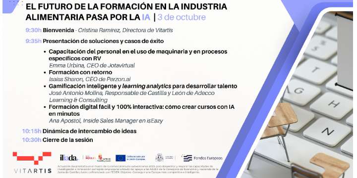 Este ciclo de «Los Viernes de IA» se realiza dentro del proyecto ILIADA, que tiene como objetivo fomentar la adopción de la IA en la Industria Alimentaria, está ejecutado por el luster VITARTIS, y financiado por la convocatoria 2025 de apoyo a AAEEII de la Consejería de Economía y Hacienda de la Junta de Castilla y León, cofinanciado con fondos FEDER.