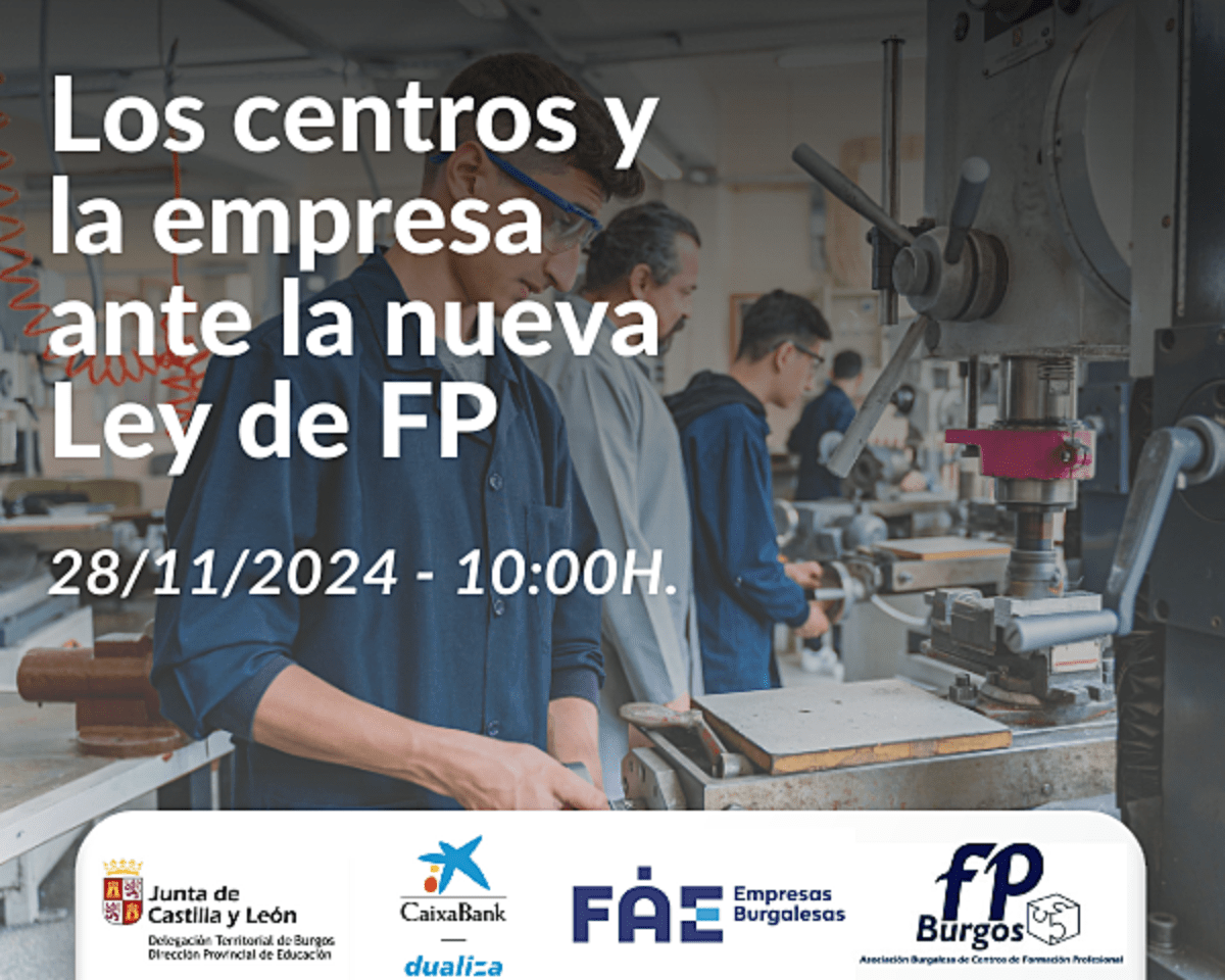 Organizado por nuestro socio FAE Burgos, junto a FP Burgos, CaixaBank Dualiza y la Junta de Castilla y León, este encuentro permitirá profundizar en las implicaciones de esta normativa para la formación en el entorno laboral, especialmente a través de la Formación en Centros de Trabajo (FCT) y la modalidad dual.