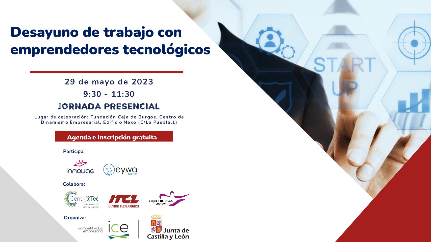 ITCL Centro Tecnológico organiza este desayuno de trabajo para reflexionar sobre cuáles son las principales causas de fracaso de los emprendedores tecnológicos y startups, y cómo reducir estos riesgos, en el marco del programa centr@tec. El evento también tiene como objetivo dar a conocer los tipos de rondas de financiación, sus criterios de participación…
