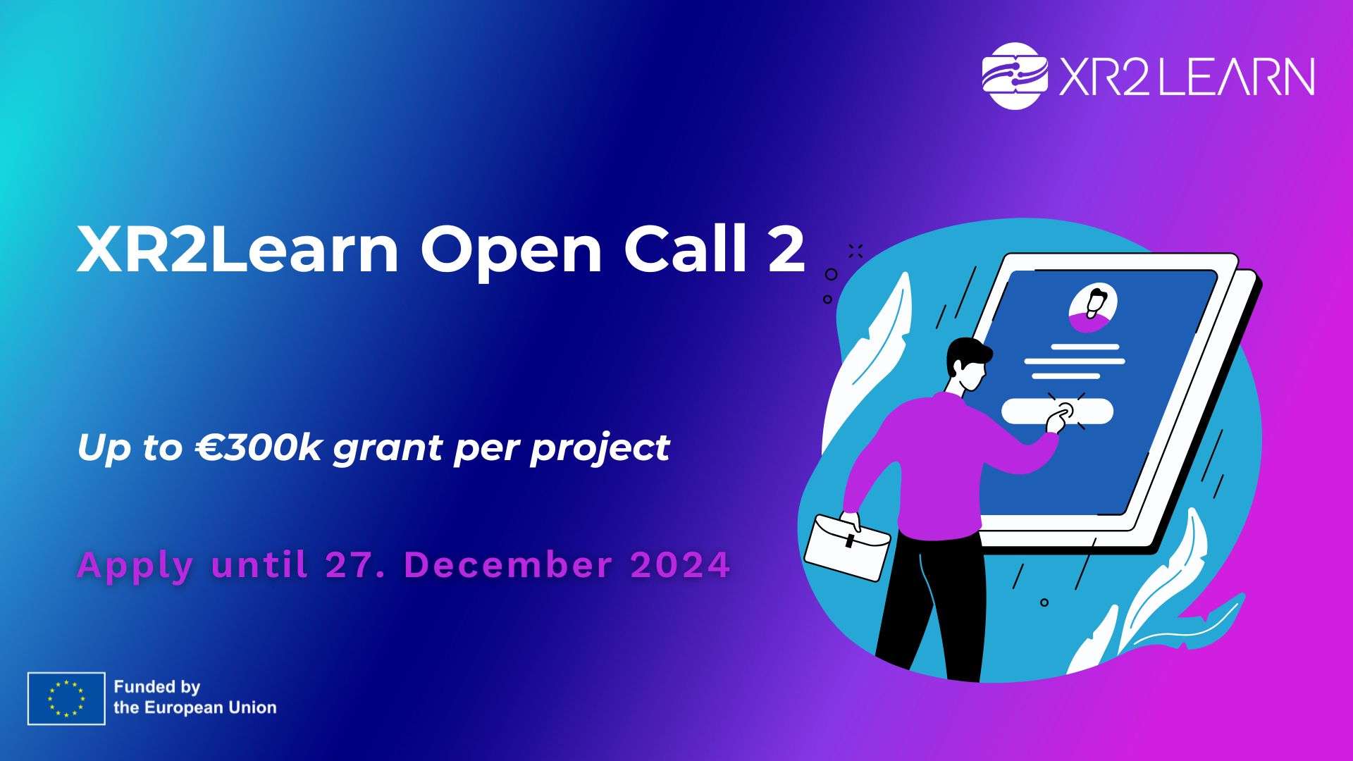 XR2Learn se centra en el desarrollo de aplicaciones XR en la educación. El objetivo de esta segunda Open Call es financiar pilotos de aplicaciones nuevas o ya desarrolladas basadas en tecnología XR con el fin de validarlas