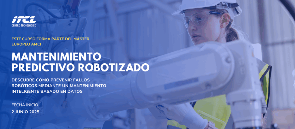 Nuestro socio ITCL organiza este curso dirigido a profesionales del ámbito industrial y tecnológico que deseen adquirir o profundizar en competencias relacionadas con el mantenimiento predictivo de sistemas robóticos. Este curso forma parte del Master Europeo AI4CI. El curso incluye sesiones en un laboratorio ROS para el Control y Monitorización de Robots.